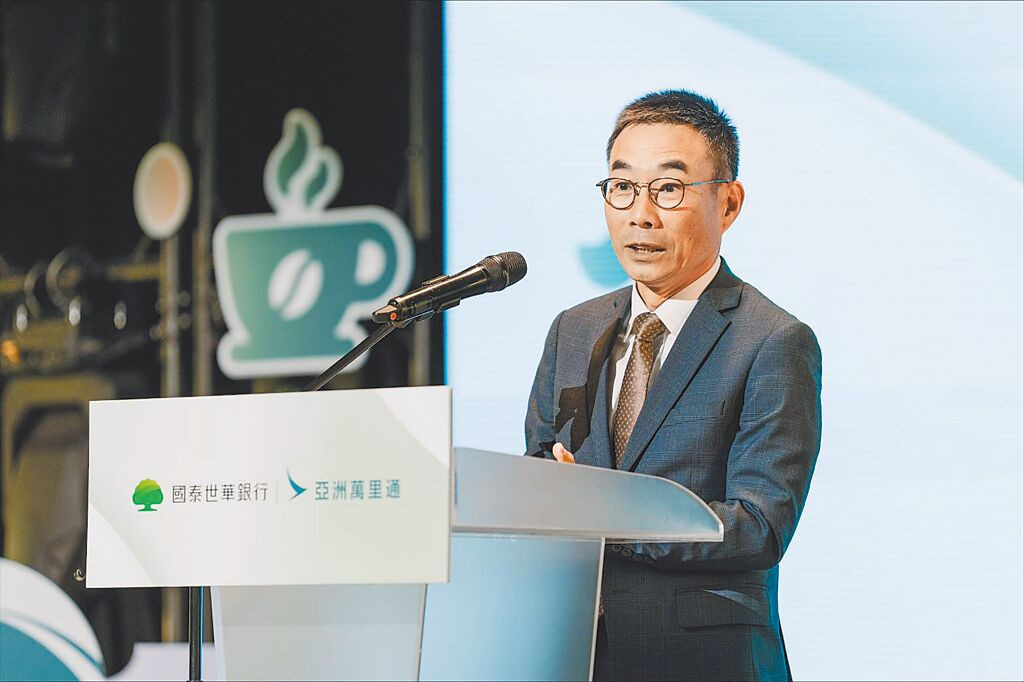 國泰世華銀行總經理鄧崇儀表示,這次與亞洲萬里通合作擴大國泰世華小樹點生態圈,除聯名卡快速累里、兌里外,所有持小樹點的卡友可將「小樹點」轉換亞洲萬里通里數,享兌換機票、旅遊住宿等多元優惠。(國泰世華銀行提供)