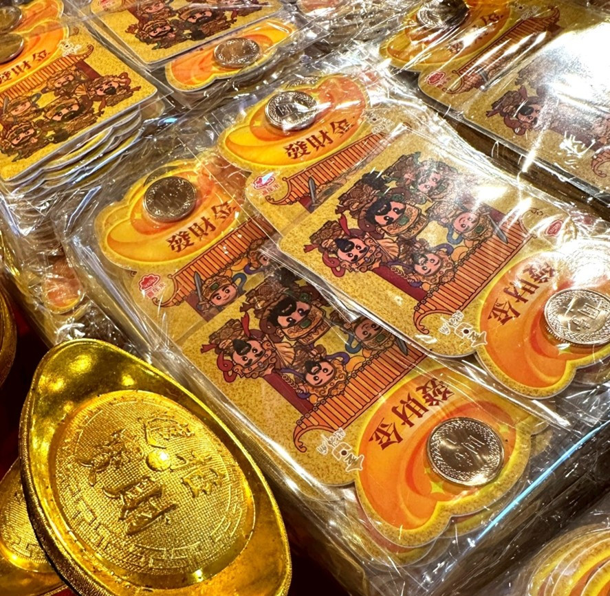今年的「財神報喜禮盒」更特別放入經金山財神廟祈福儀式過爐加持的發財金,將喜氣及財運通通捲回家。(圖/喜年來提供)