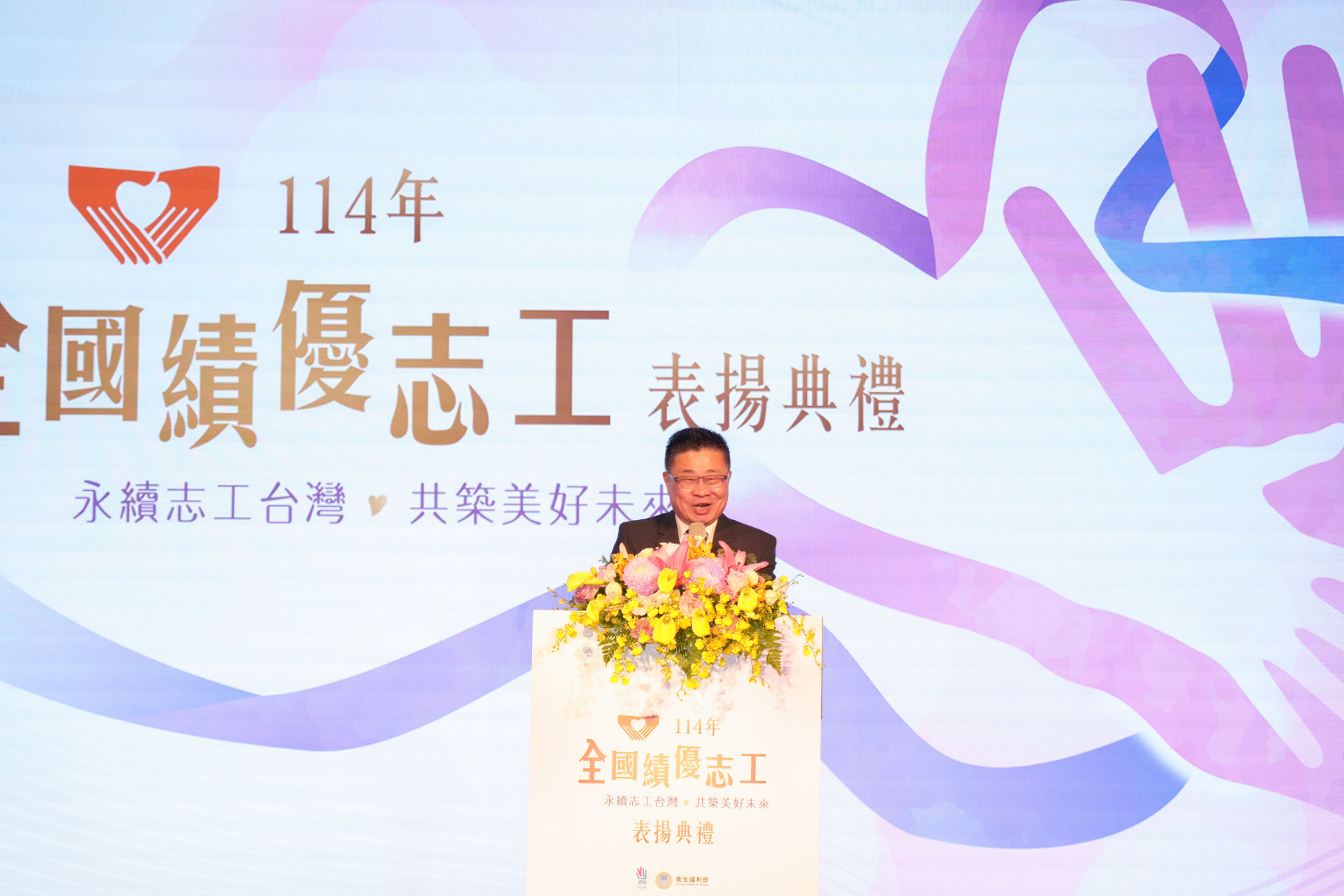 花蓮馬太鞍溪堰塞湖災害事件中,「鏟子超人與各行各業專業超人志工」讓各界見證「臺灣志工」的力量,臺灣許多角落都有志工的投入與支持,推動著社會前進。衛生福利部為慶祝「國際志工日」、弘揚志願服務精神,於本(114)年11月28日在大直典華幸福大樓盛大舉辦「全國績優志工表揚典禮」,表揚5位獲衛生福利特殊貢獻獎志工、25隊績優衛生福利志願服務志工團隊及777位服務時數達8,000小時以上獲全國「金牌獎」志工。衛生福利部呂建德次長親臨現場頒奬,感謝志工夥伴無私付出與努力,展現臺灣社會的溫暖與韌性。