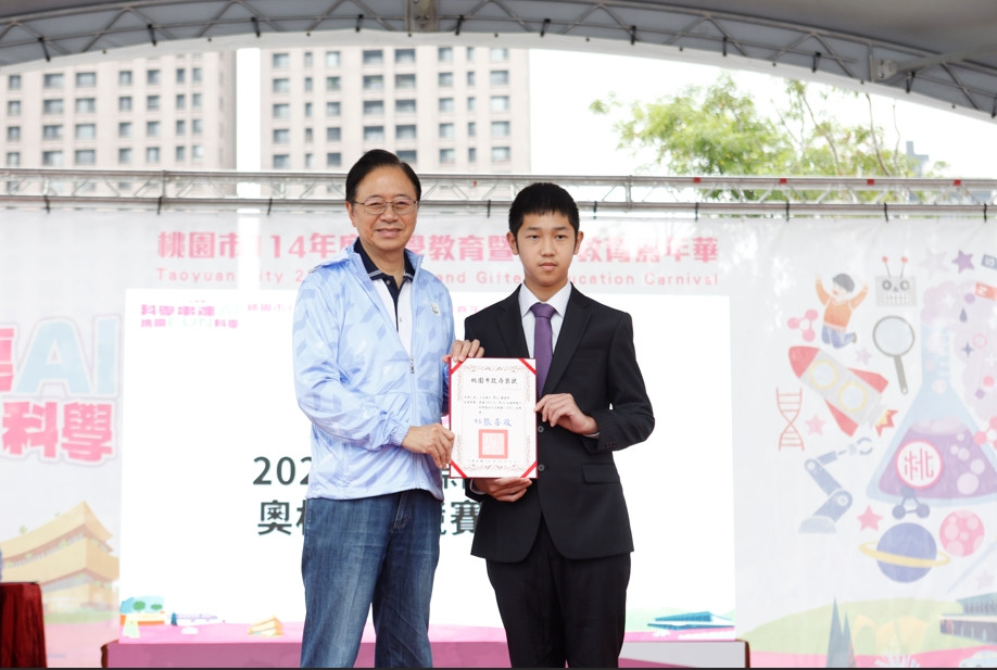 桃園市市長張善政更親臨現場,表揚本市文昌國中學生蕭睿希參加2025年「第22屆國際國中科學奧林匹亞競賽(IJSO)」榮獲金牌獎的佳績,以及參與本市水火箭比賽及國小科學基本能力競賽的獲獎團隊,勉勵師生在實作與挑戰中持續精進。期盼透過科學教育的扎根,引導孩子掌握未來科技趨勢,培養能與世界接軌的能力,以科技改善生活、以創新擘劃未來,而今日嘉年華正是本市人才培育與教育能量的重要展現。