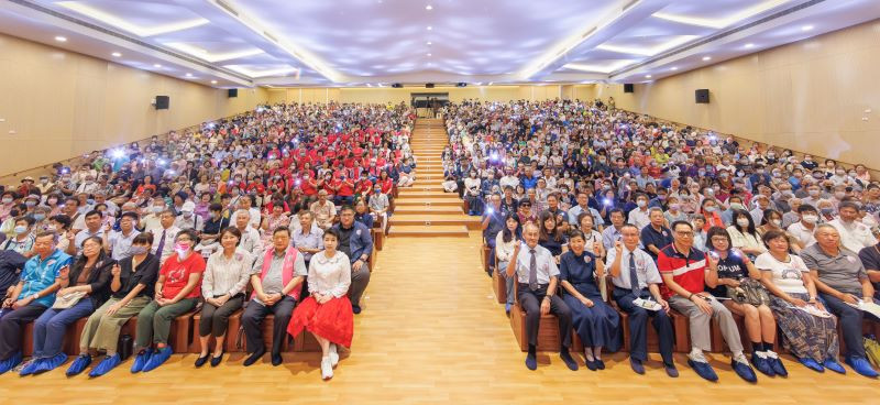 最後,特別感謝億光文化基金會提供軍用材質高效能LED手電筒1000支,深受許多鄉親們的驚艷與歡喜,大家都說:「光就是希望,光就是帶來正向的能量!」說真的,這就是我們主辦單位舉辦「歡唱滿人間」音樂會的真正價值!感謝再感謝,我們做到了喔!最後在千人高唱〈恰似你的溫柔〉及〈月亮代表我的心〉中,以滿滿的歡喜心畫下句點。