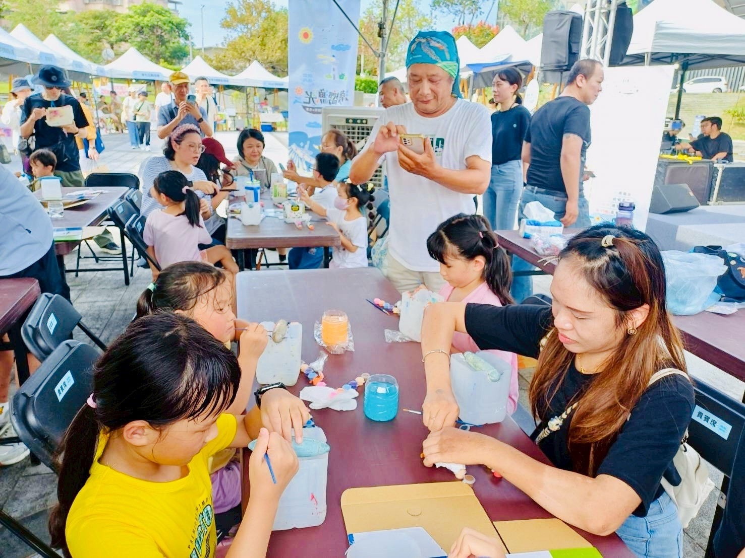 活動中最受親子歡迎的「海廢浮球藝術DIY」體驗區,由基隆市政府與國立臺灣海洋大學陳信助老師合作並由陳信助老師親自教學。長年致力於推廣海洋廢棄物再利用教育的陳信助老師,將廢棄浮標與漁具轉化為創意藝術品,他以生動的教學方式,引導參與者在手作中了解「海廢再生」的價值與環保意識。