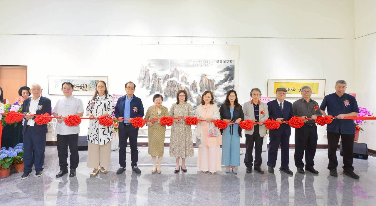 《白雲傳承.水墨初心——黃君璧・黃湘詅台北畫展》於4月18日在國立中正紀念堂一樓第二展廳隆重開幕,現場匯聚政界、學界與藝文界重要人士,共同參與剪綵儀式。(照片提供|白雲堂藝術研究會・名德國際傳播)