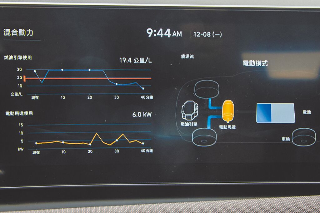 中央12.3吋螢幕即時動能運轉狀態。(陳大任攝)