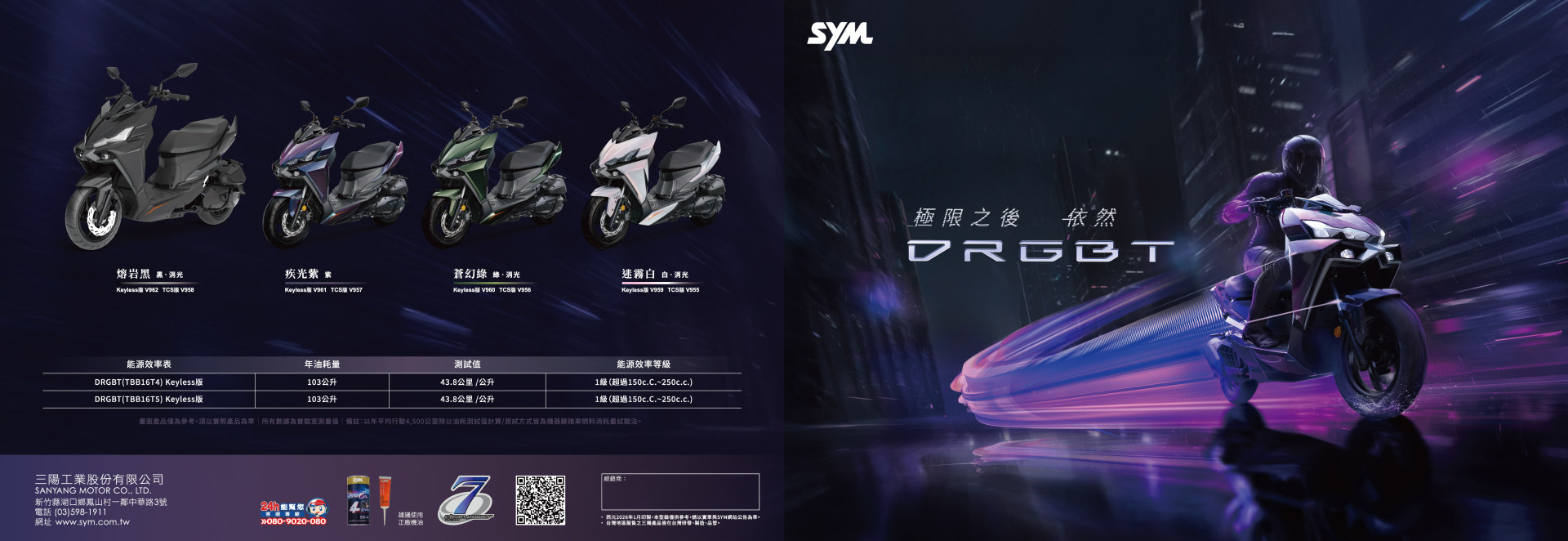 藉由「安全」與「動力」的雙重進化,新款DRGBT不僅呈現了運動速可達的王者風範,更重新定義了白牌機車的安全新標準。歡迎大家親臨全台SYM經銷據點,親身感受全新DRGBT的操駕魅力。