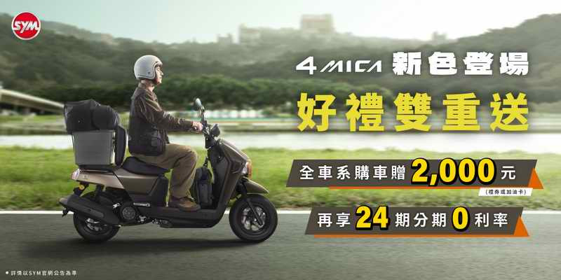 購車享SYM加碼2,000元禮券,更多資訊洽SYM官網或全國經銷商,搶先體驗SYM 4MICA的空間魅力!