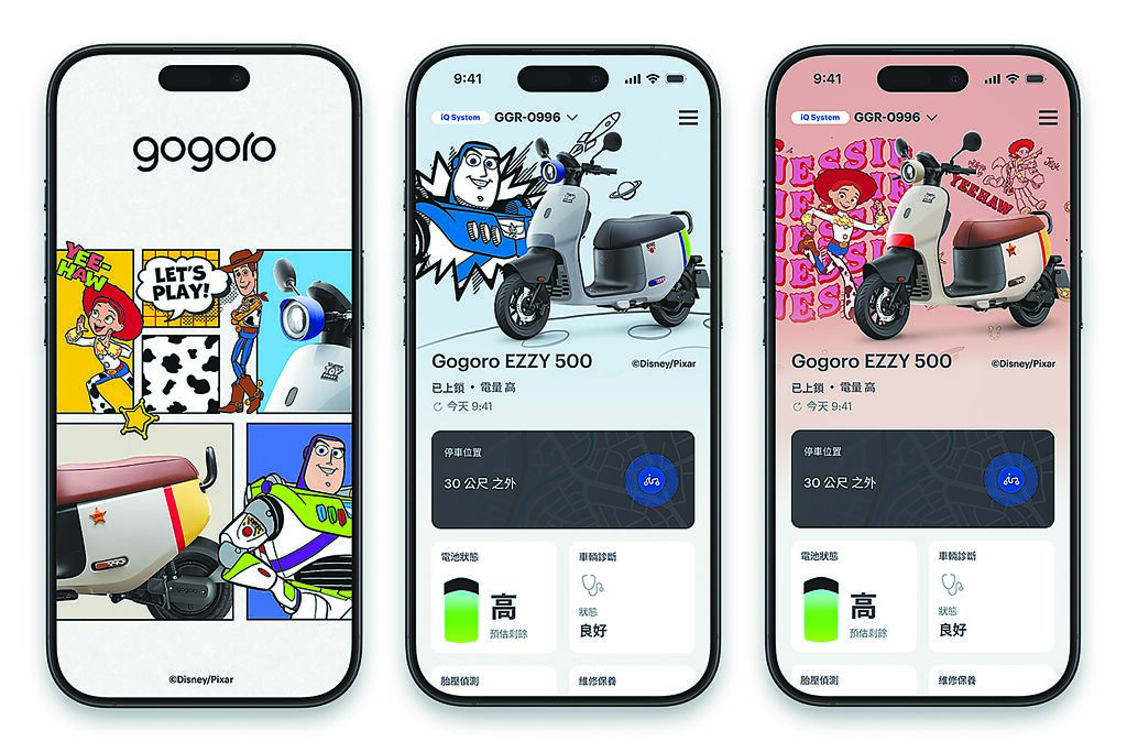購買Gogoro EZZY 500玩具總動員系列車款的車主,可在《Gogoro》App同步解鎖專屬角色主題介面。(Gogoro提供)