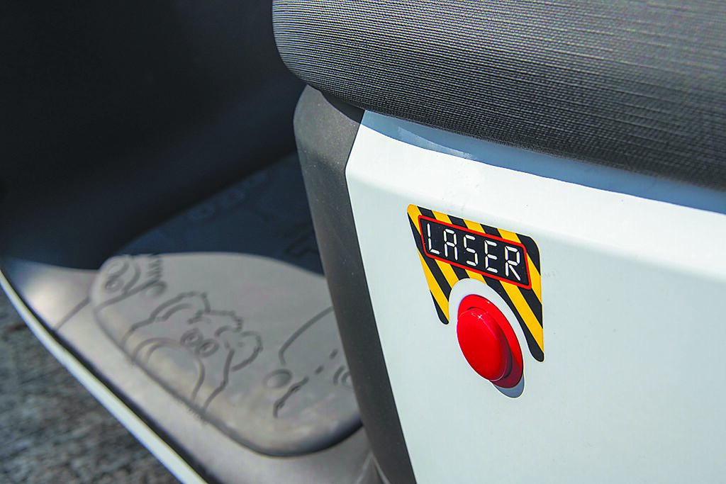 車身彩蛋/「浩瀚宇宙號」巴斯光年雷射按鈕。(陳大任攝)
