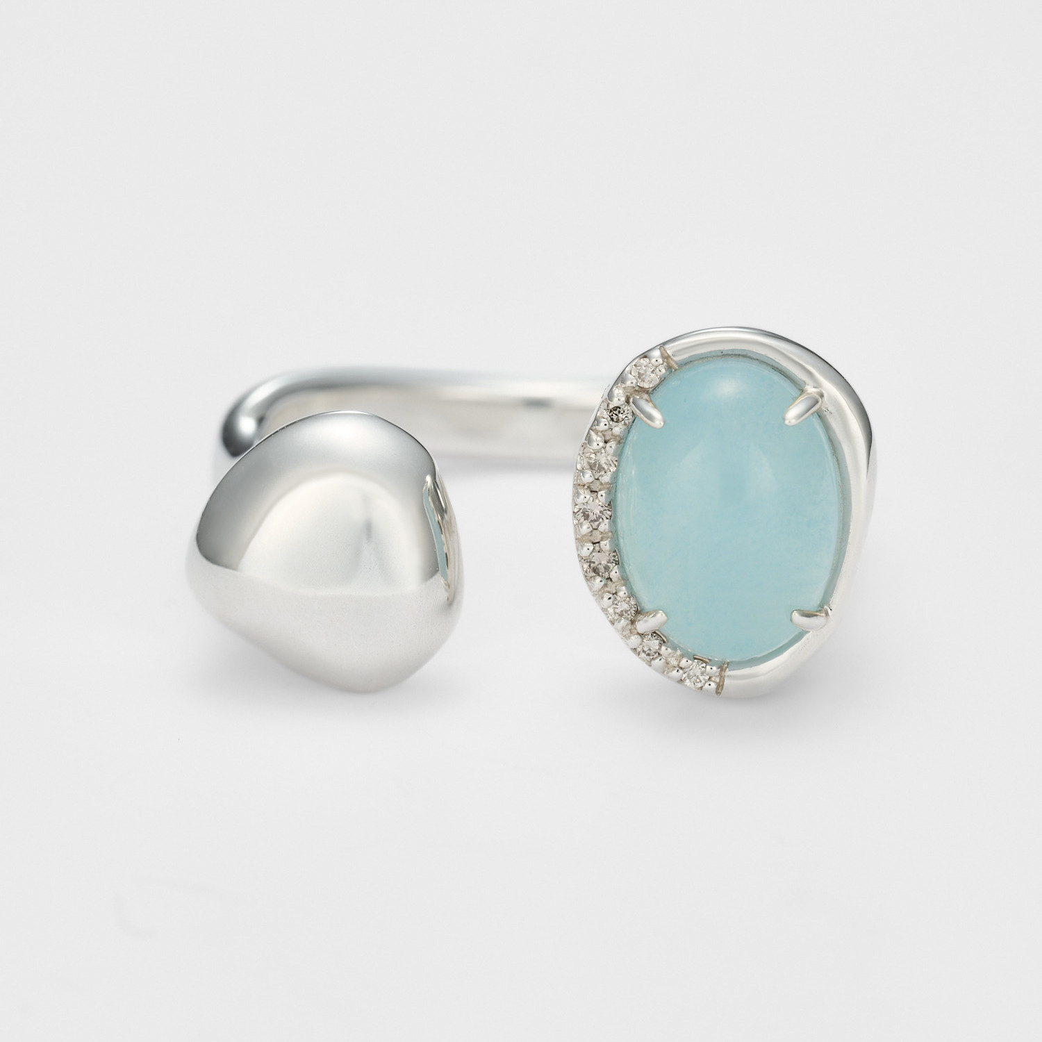 柔美的有機波浪造型搭配乳白色海藍寶,結合鑽石細節如同海浪飛濺,流動感十足,蘊含勇氣與希望。
