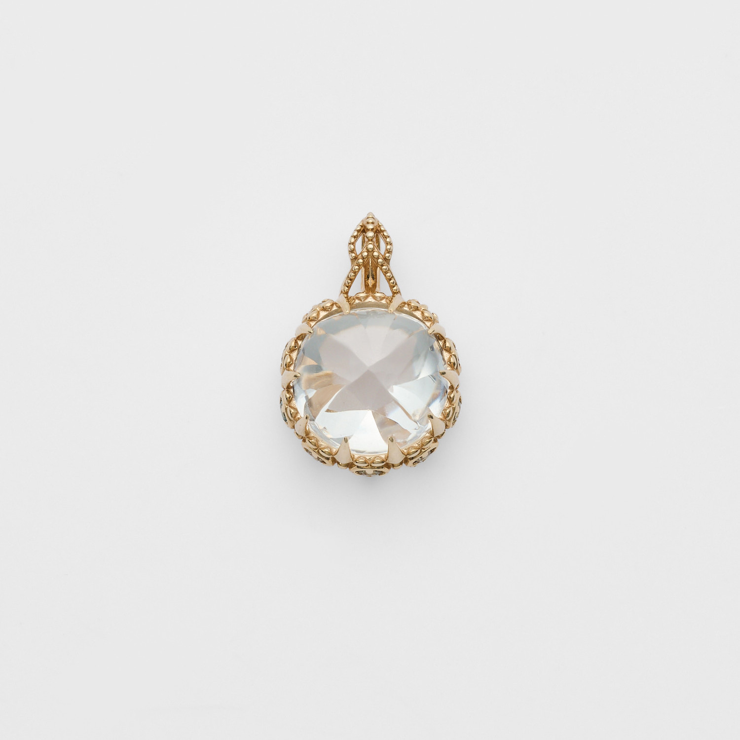 白色托帕石如水面閃耀,與鑽石、海藍寶石交織出柔和光感。搭配鏤空雕刻細節,展現華麗復古的細膩工藝。