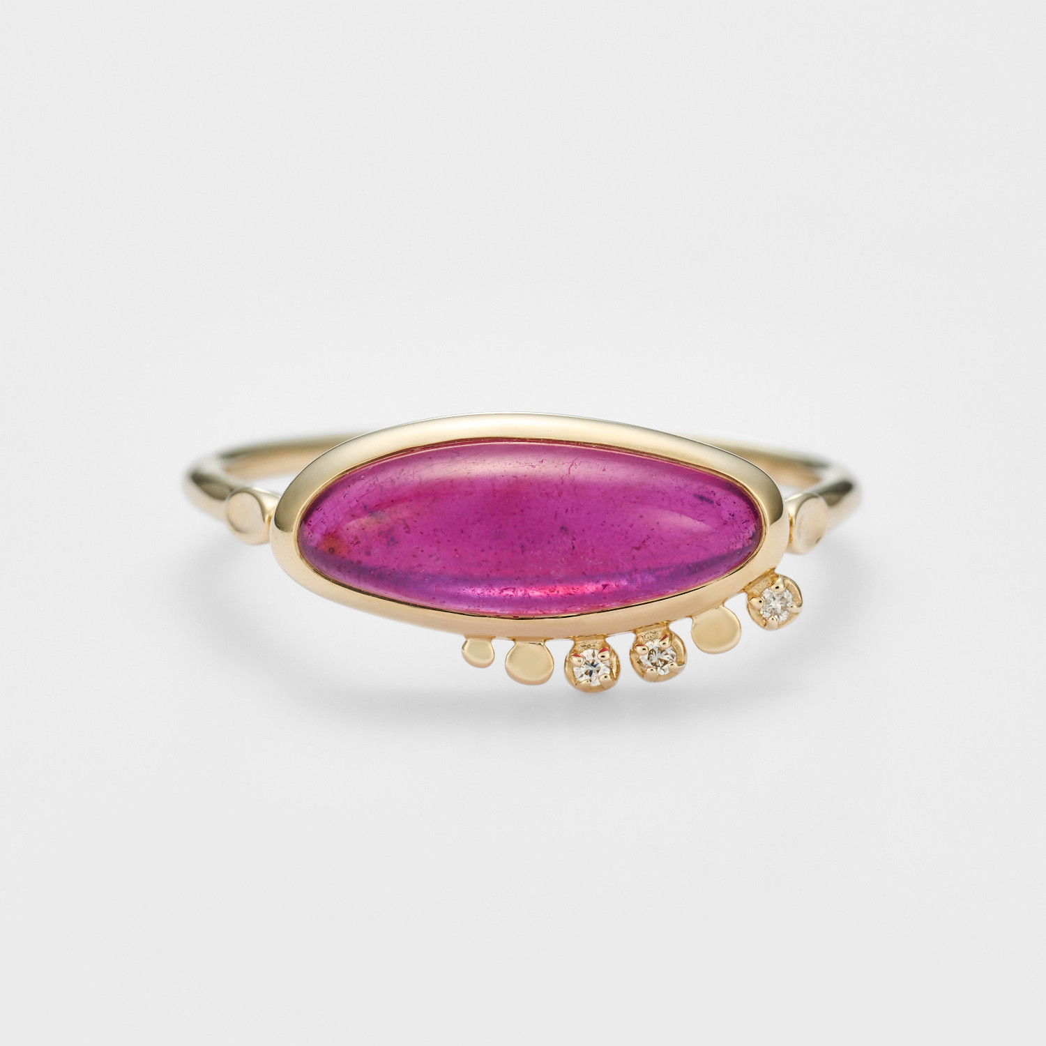 橫向戒型與亮眼紅寶色澤,彰顯熱情與力量。精緻比例易於疊戴,輕鬆搭配多元風格。