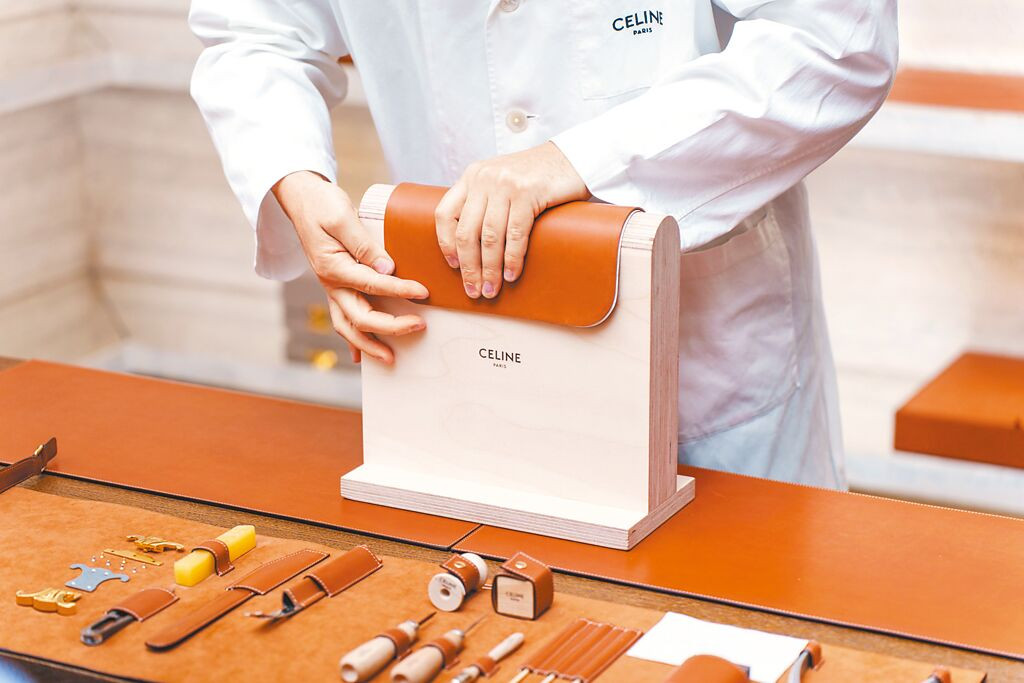 CELINE由義大利皮具工坊請來皮革匠人,為台灣消費者展示CELINE打造皮革包款的工藝流程。(吳松翰攝)