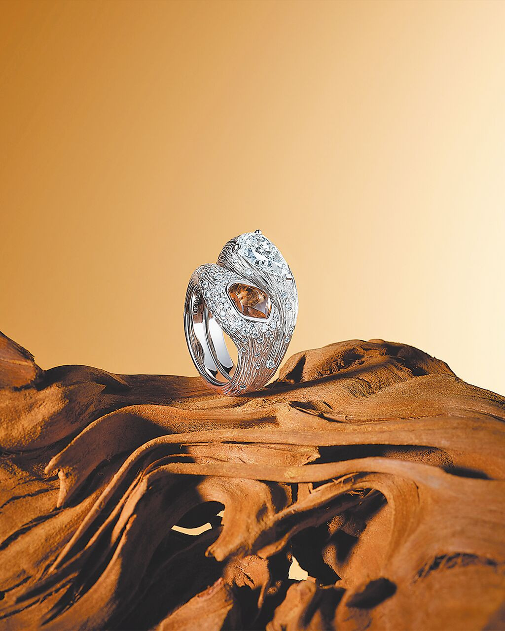 De Beers「Essence of Nature」系列Baobab Magnitude戒指,靈感源自波札那的猴麵包樹。(De Beers提供)