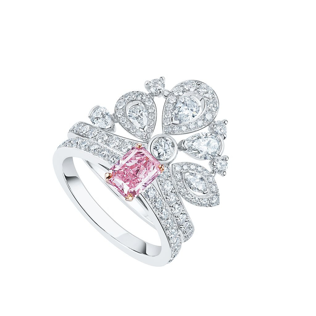 De Beers「Essence of Nature」系列Jacaranda Bloom粉紅鑽皇冠式戒指,主石為逾1克拉粉紅鑽。(De Beers提供)