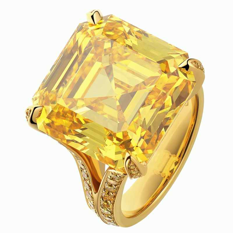 這枚被譽為「金絲雀」的海瑞溫斯頓方形祖母綠型切工黃鑽戒指約25.33 克拉,以稀世黃鑽的奪目光彩成為矚目焦點。主石以極為珍罕的艷彩黃鑽呈獻,經祖母綠型切工勾勒出優雅大器的方形輪廓,搭配戒圈上極細微密釘鑲嵌的圓形明亮式切工鑽石 與 18K 黃金底座,讓華美光芒更為璀璨奪目。