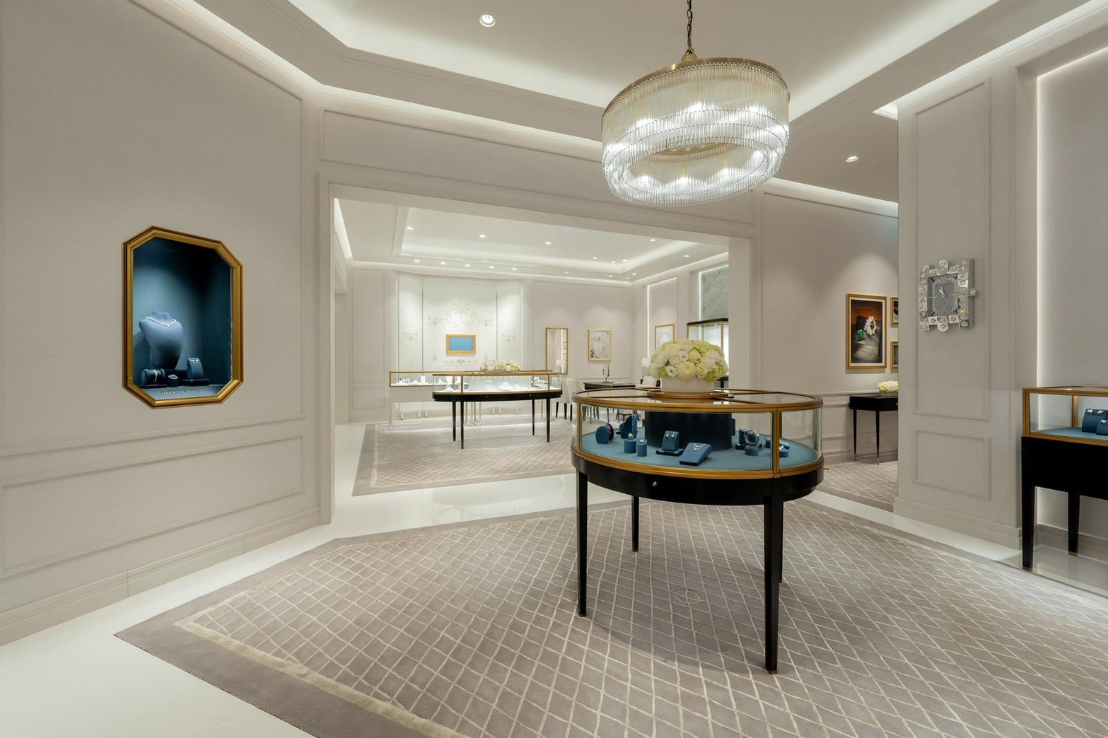 全新海瑞溫斯頓台北101品牌專門店,煥新空間細節處處體現品牌經典美學與當代優雅風格。拋光白色大理石勾勒品牌專門店的建築輪廓,牆面以光澤質感與大理石細節相互映襯,營造出明亮通透的氛圍。量身訂製的地毯增添溫潤氣息,而華麗典雅的水晶吊燈成為空間的視覺焦點,與精心臻選的典雅傢俱相得益彰。