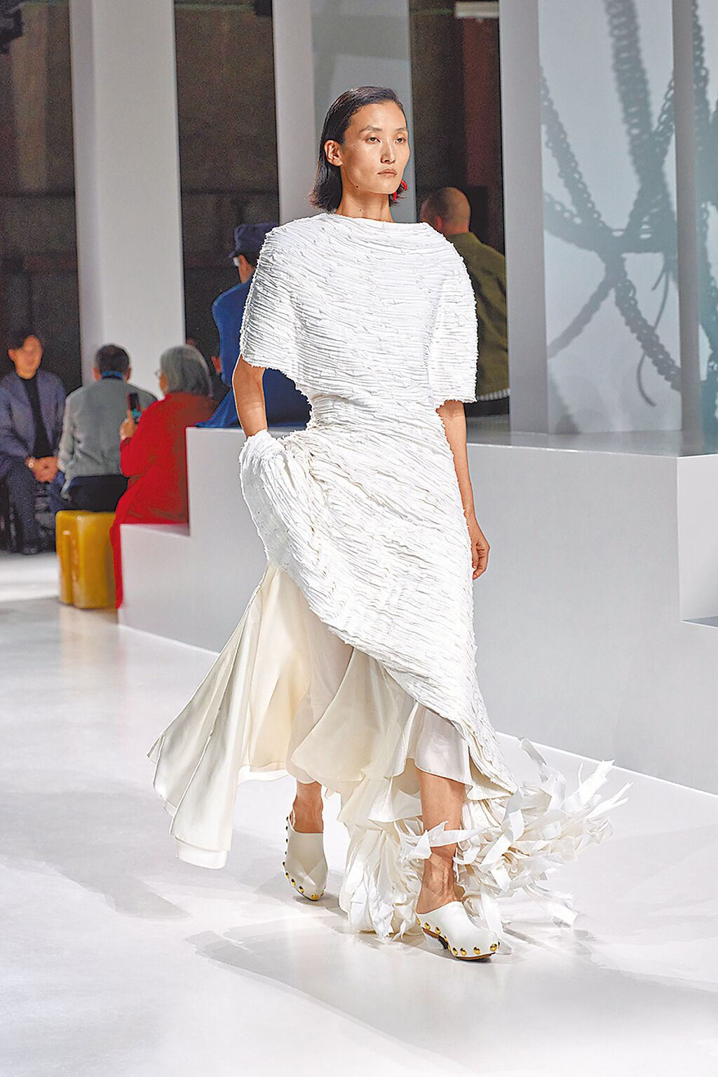 Bottega Veneta 2026春夏系列,整體服裝輪廓簡潔且俐落,不過在服裝細節如腰線輪廓上,又是十分細膩。(Bottega Veneta提供)