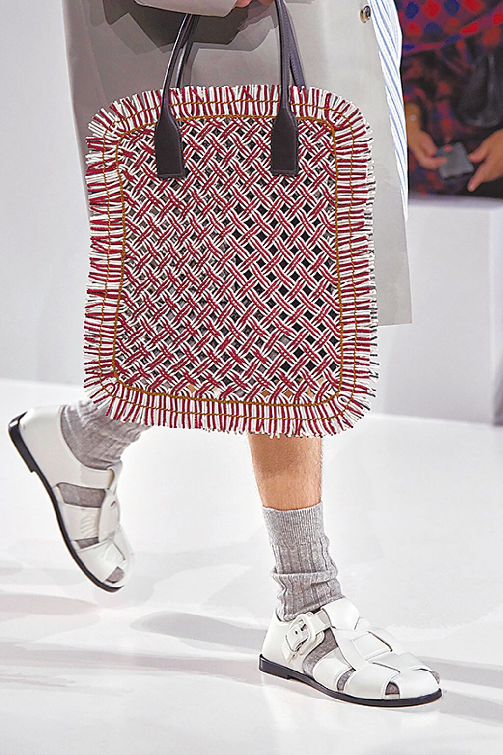 運用降落傘絲、回收玻璃纖維製作的流蘇,是本季亮點元素之一。(Bottega Veneta提供)