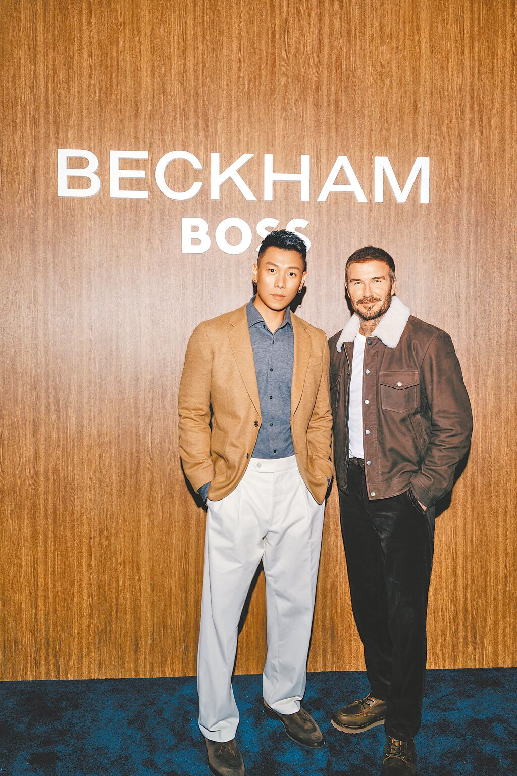 瘦子此行是受邀出席BOSS於上海舉辦的「BECKHAM x BOSS」沉浸式體驗空間活動,這場活動為慶祝BOSS與貝克漢聯名系列2025秋冬新作正式登場。身為系列共同設計師,貝克漢特別親臨現場,活動當日,他以深棕色小牛皮夾克搭配褶飾長褲與切爾西靴亮相,完美演繹紳士魅力。