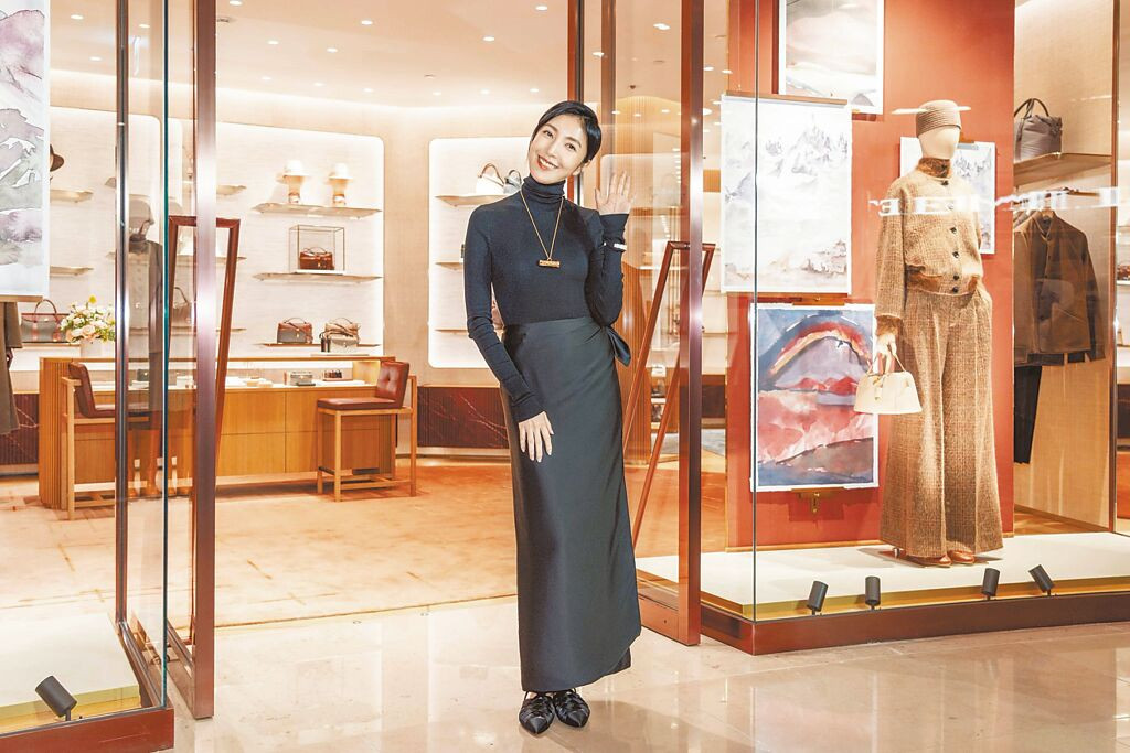 楊謹華喜愛Loro Piana的溫潤優雅質感,更現場挑選心儀包款。(石智中攝)