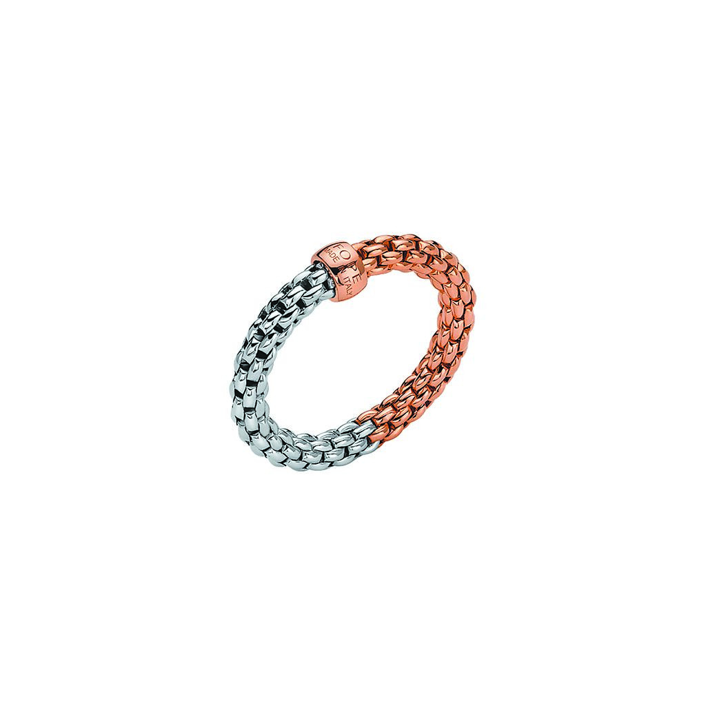 義大利FOPE可伸縮彈性玫瑰金與白金戒指,3萬6000元起。(瑞博品提供)