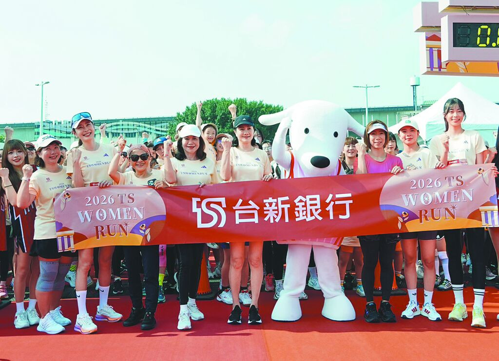 台新新光金控董事長夫人彭雪芬(左六)、台新投顧董事長洪素珍與基隆市副市長邱佩琳(左五)等人出席2026台新新光女子路跑。(台新新光提供/黃琮淵台北傳真)