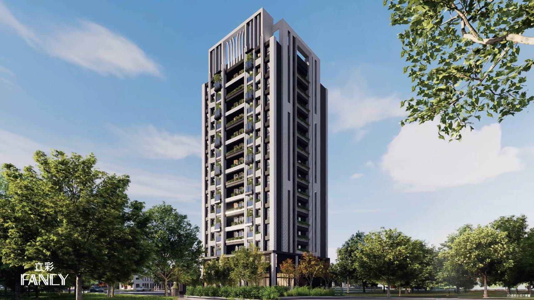 圖片說明:立彩FANCY外觀圖,位於爽文路與永隆5街,大里二期精華角地。
