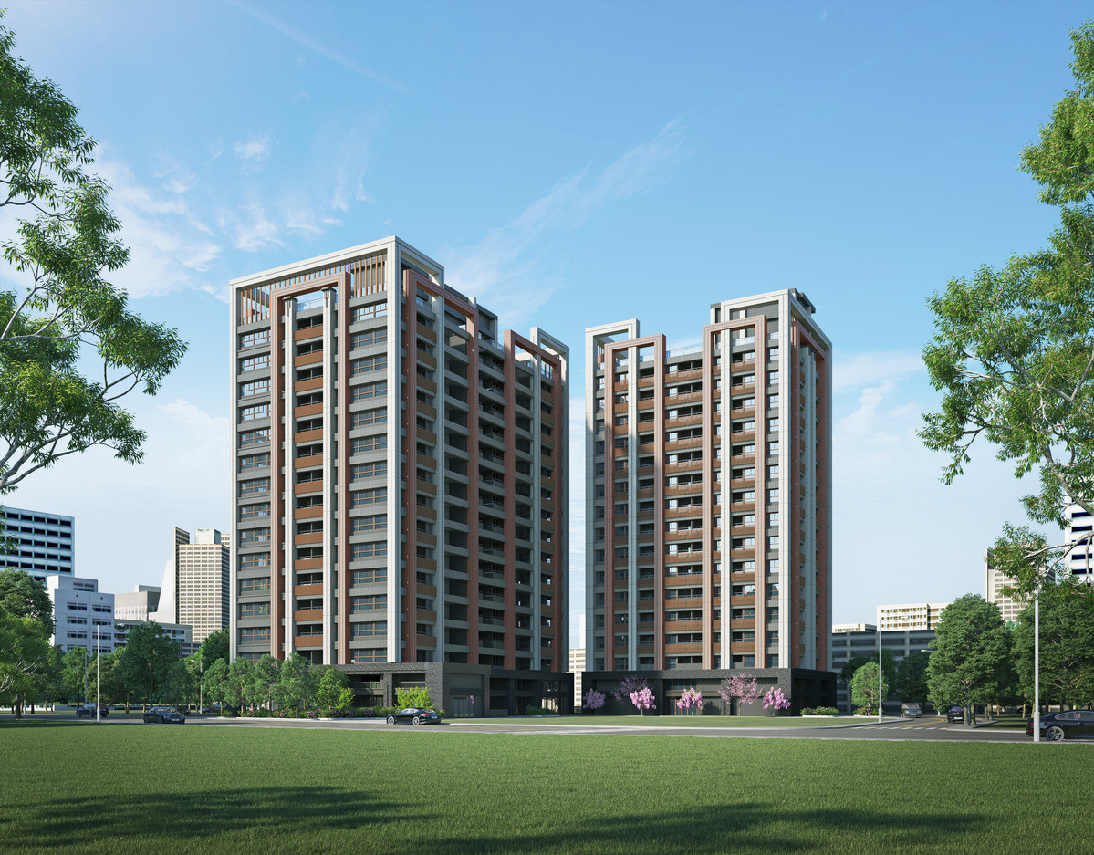 司法園區首排,紅布朗花園打造宜居環境。(外觀3D示意,圖片來源:紅布朗花園)