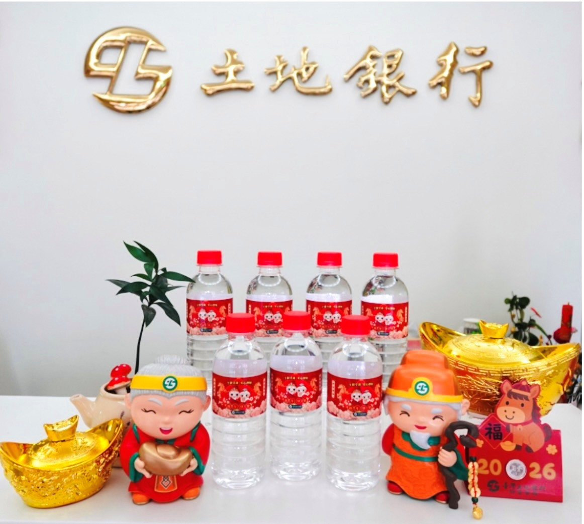 土地銀行為感謝客戶長期支持與愛護,將於新春開工首日(115年2月23日)起致贈財氣滿滿的「庫藏發財水」,瓶身小金馬搭配土地公、土地婆發送紅包圖像,象徵金馬年迎新開運,招財又進寶,期盼大家新的一年都能「金馬迎春,財運滿分」,數量有限,贈完為止。