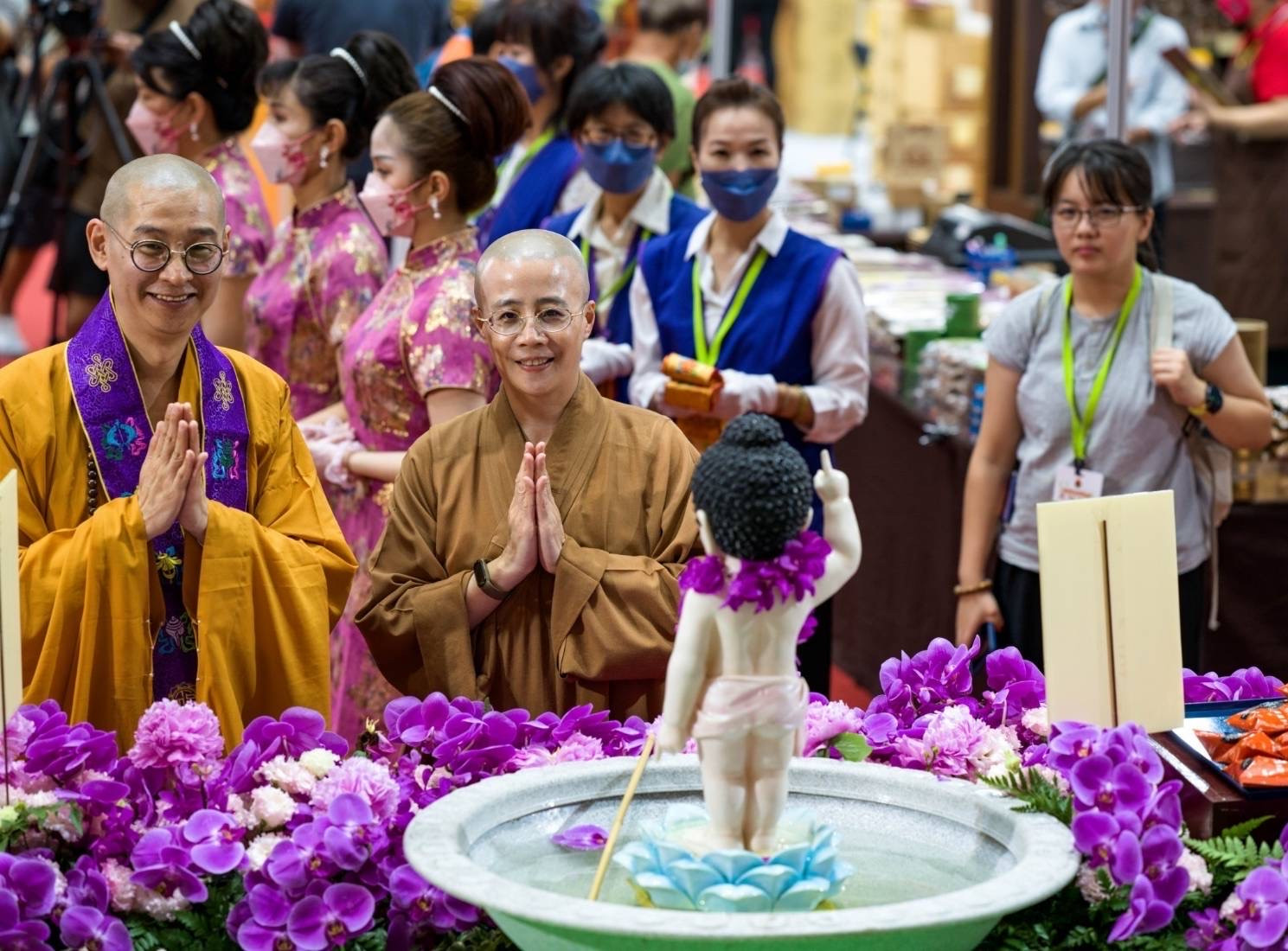 圖說:國際佛誕文化節浴佛是一定要的儀式/圖為2023佛誕(左)大慧法師、(右)開善法師