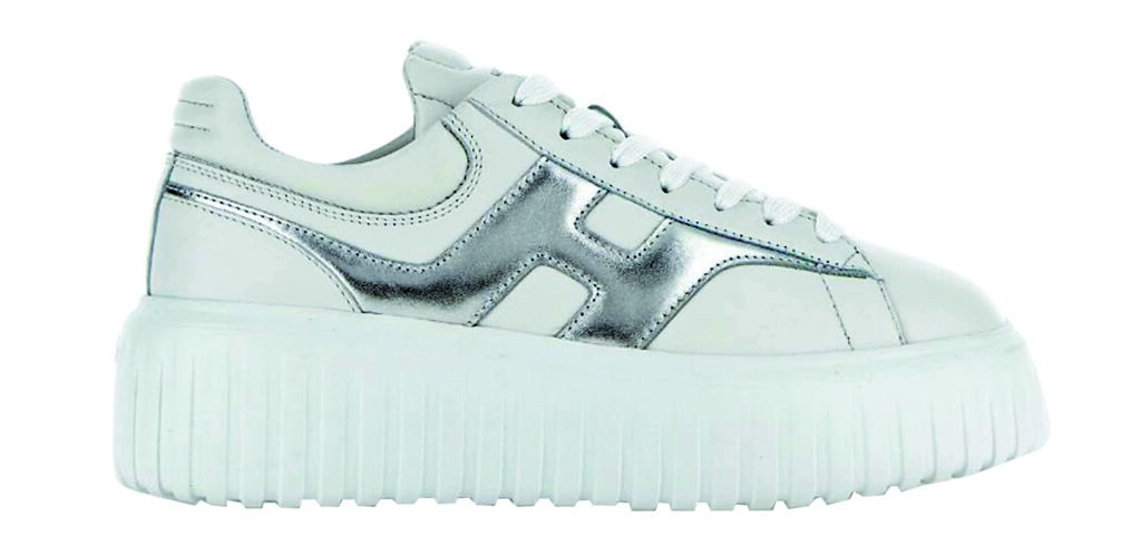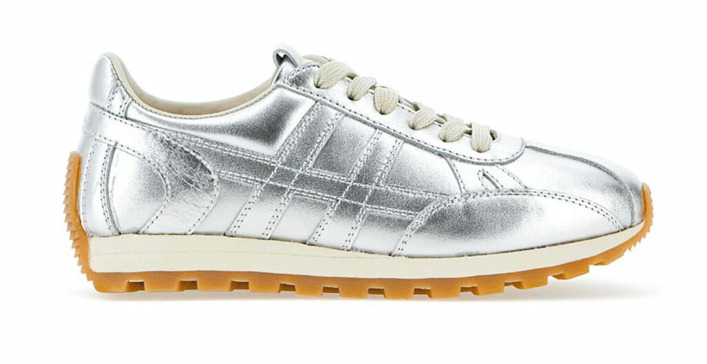 HOGAN 86er銀色皮革女士休閒鞋,1萬8000元。(HOGAN提供)