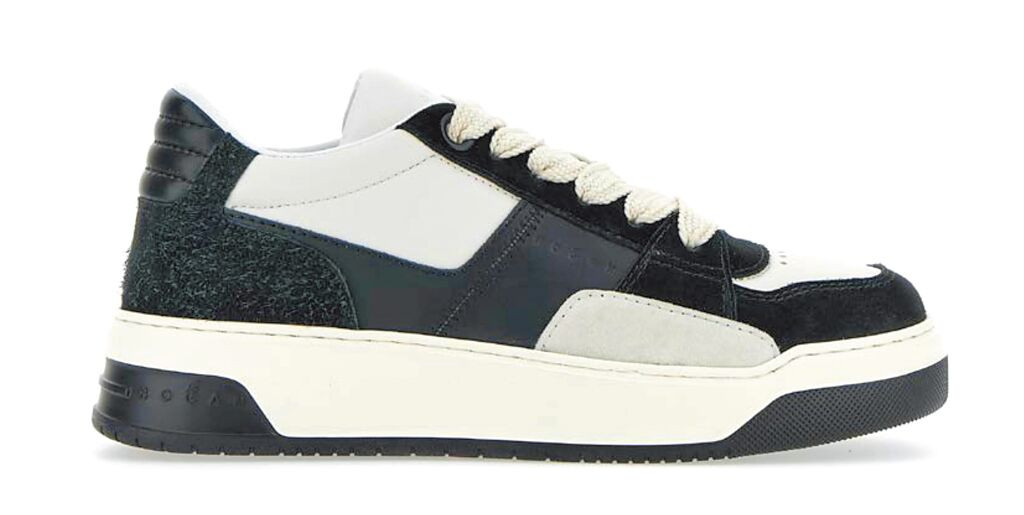 HOGAN Chamallow白色與黑色皮革拼接男士休閒鞋,2萬1000元。(HOGAN提供)