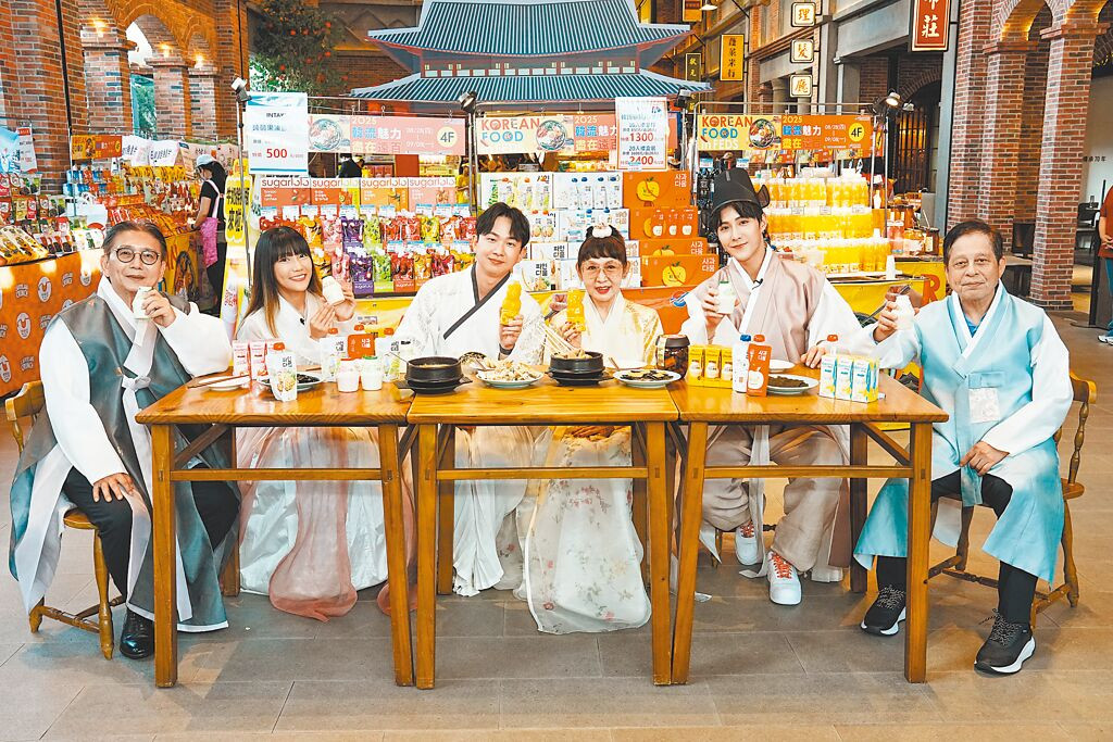 「2025韓流魅力盡在遠百」韓國物產展開跑,遠東百貨徐雪芳總經理(右三)、林彰豊副總(右一)、陳佑任副總(左二)、韓國代表部經濟文化組金優赫科長(左三),向大家推薦優質韓國商品。(遠百提供)