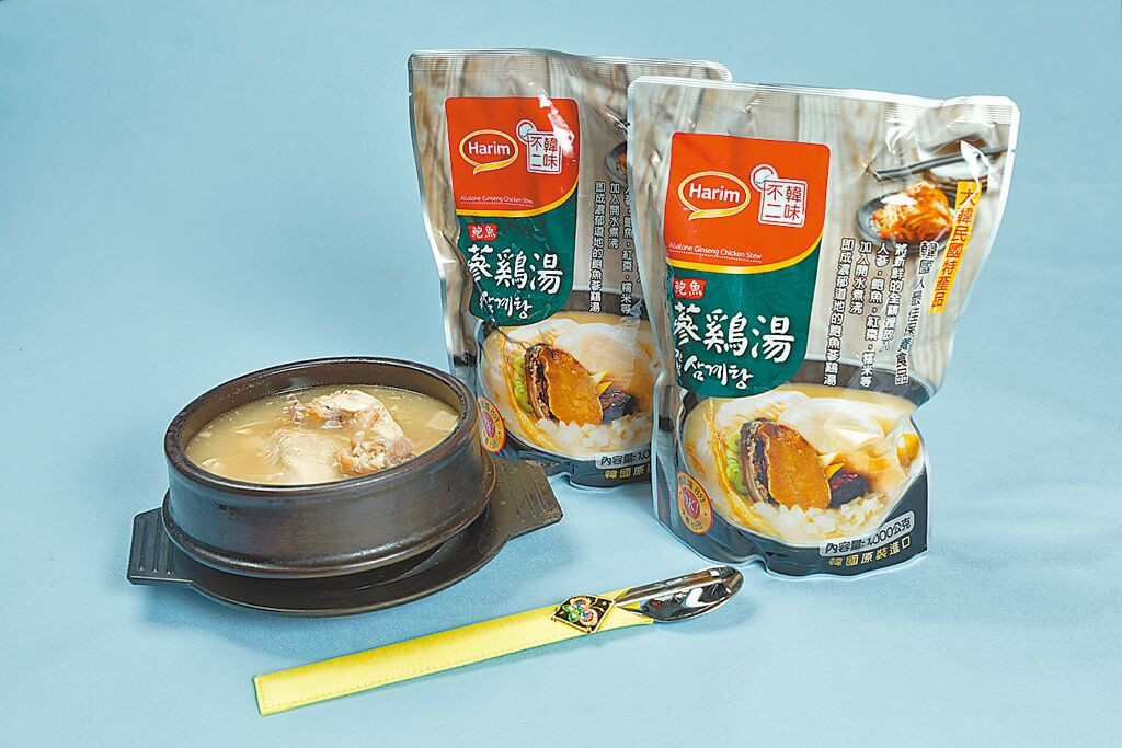 韓味不二夏林鮑魚蔘雞湯,以一整顆帶殼的鮑魚及人蔘、糯米、栗子、紅棗和大蒜等食材燉煮,具有滋補養生的功效,使用無菌氣密袋包裝,不含防腐劑,用微波加熱或隔水加熱即可食用,方便快捷。