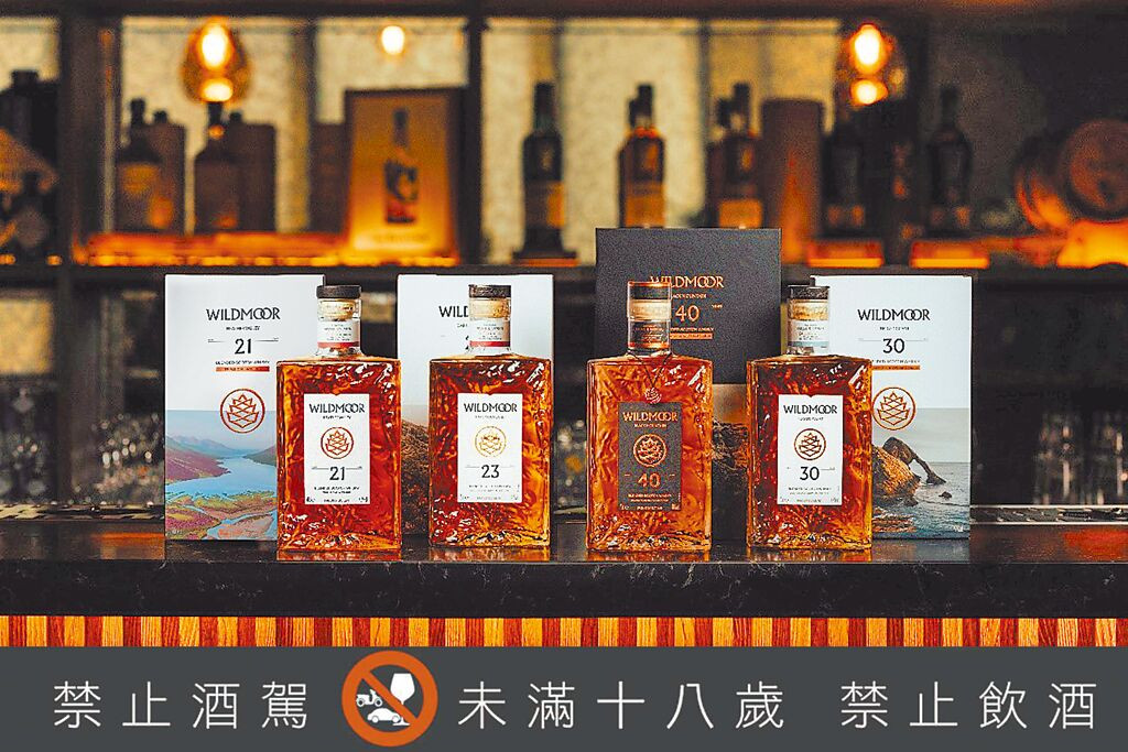 遠慕推出四款專獻台灣的年份威士忌,分別是21年(左起)、23年、40年和30年。(格蘭父子提供)