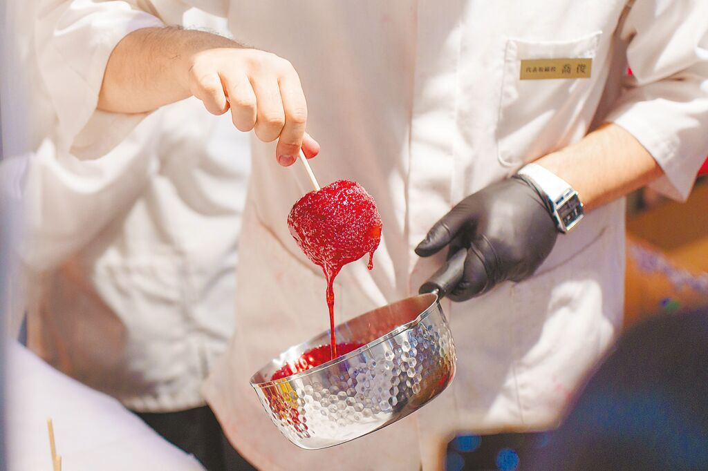新光三越日本展「POMME d’AMOUR TOKYO」蘋果糖每日賣出超過千顆。(吳松翰攝)