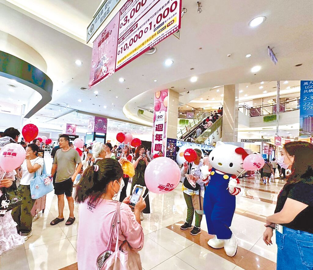 Global Mall新北中和開檔首日即湧現人潮,Hello Kitty現場迎賓為20週年慶揭開序曲。(Global Mall提供)