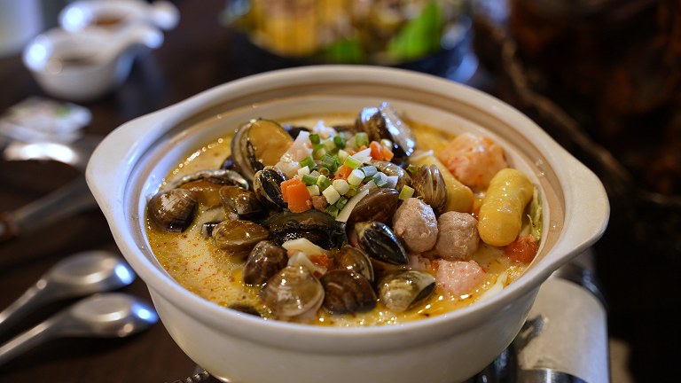 今日的菜單:鮑魚牛奶鍋、野生午仔魚、野溪蝦、放牧百斬雞、手工芋棗。湯香濃郁、魚肉雪白、溪蝦脆甜、芋棗軟糯——那是大地的五線譜,每一口都讓味蕾旅行。
