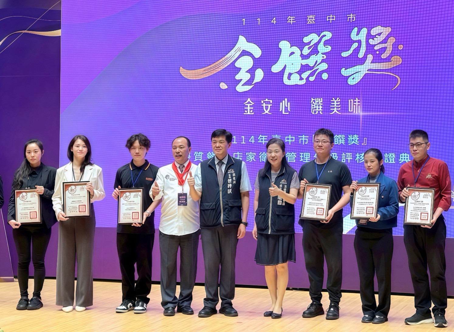 焦糖楓榮獲「台中金饌獎」評核優良餐飲業者。(左2)焦糖楓執行長陳妍霖(圖/焦糖楓提供)