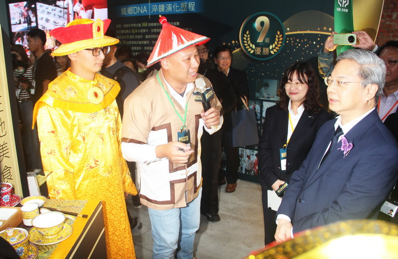 頒獎典禮現場也以多元體驗方式呈現地方特色產業的豐富樣貌,經濟部長龔明鑫巡視各攤位瞭解成功因素。