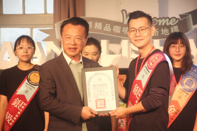《啡嚐嘉義風味之旅品嚐會》縣長頒發《啡嚐嘉義》金、銀級品牌種子成員認證書。