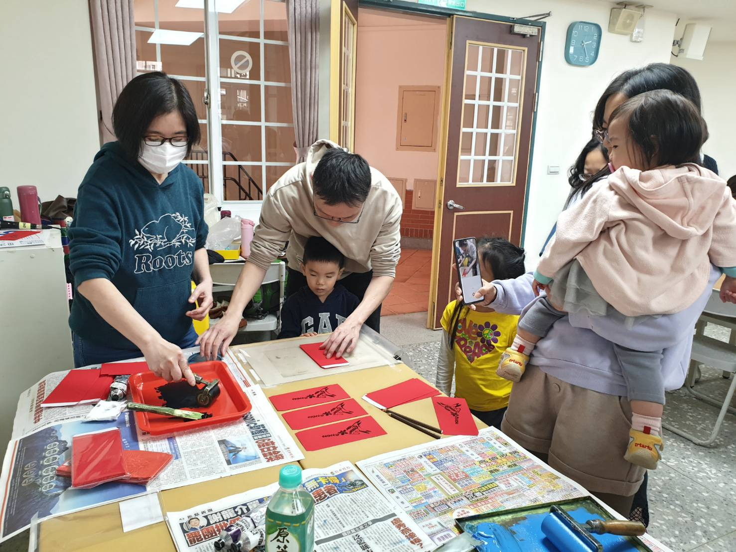 為迎接即將到來的農曆馬年,臺北市士林區公所於115年1月31日在士林公民會館辦理「馬年迎春-印出新年好采頭」親子DIY活動,邀集親子家庭、新住民家庭參加,讓爸爸媽媽帶著小朋友一起親手印製年畫,透過馬年吉祥年畫網版,讓親子共同體驗轉印至斗方春聯紙,完成作品可以做為春聯張貼也可以摺成可愛小馬或紅包袋,以趣味活動,增添年節氛圍,同時也讓新住民朋友融入中國的傳統手工技藝。