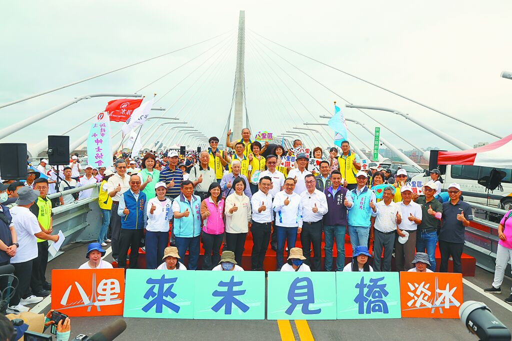 淡江大橋17日下午舉辦通車前首場暖身活動「淡水八里.橋見未來」,吸引上萬名市民登橋參與。(鄧博仁攝)
