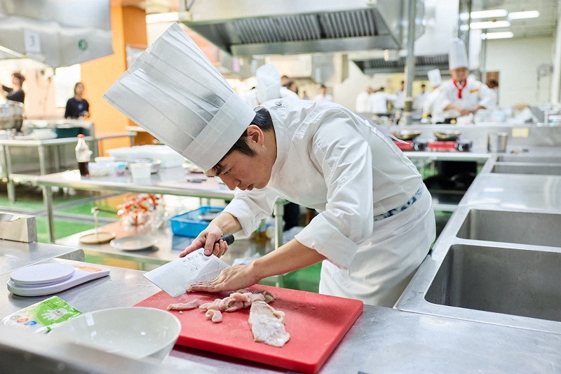參賽業者全神貫注,以精湛刀工細心處理食材,展現職人料理的專業態度與廚藝功力。