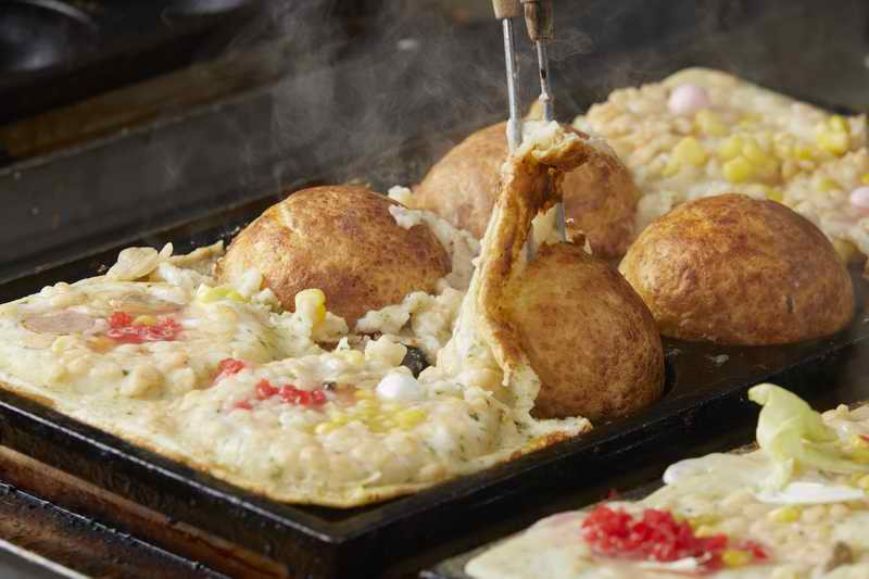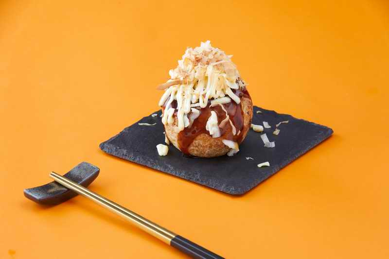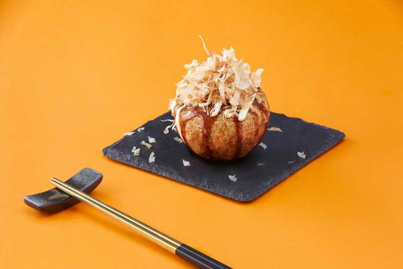 「爆彈燒本舖」(ばくだん焼本舗)起源於東京池袋,自創立以來便以「新型態街頭美食」的姿態席捲東京,是東京年輕人心中最具代表性的排隊美食之一。品牌除了特色商品「爆彈章魚燒」(ばくだん焼)外,更以頻繁與IP合作推出限定周邊聞名,曾與「鬼滅之刃」、「咒術迴戰」、「原神」等知名動漫、手遊IP合作,在日本掀起排隊旋風,近期更擴展版圖至南韓,而今登陸台灣。這枚外型如「砲彈」般的巨型球體,之所以被稱為「最有料章魚燒」並非空穴來風,由營養師監督過的配方,從麵糊開始每一毫米都是對滿足與健康的追求。除了麵糊外,以「章魚、蛤蜊、天婦羅碎、玉米、高麗菜、鴻喜菇、德式香腸、紅薑碎、小湯圓甚至鵪鶉蛋」,組成的內餡,不僅是視覺上的豐富,更是每樣食材各司其職的營養分工。不同於傳統章魚燒追求的輕巧,「爆彈章魚燒」(ばくだん焼)的核心靈魂在於其「厚實又豐盛」,每一顆都必須經過職人長時間的精準翻轉,才能維持外皮金黃酥脆、內餡炙熱又柔滑的日式口感。
