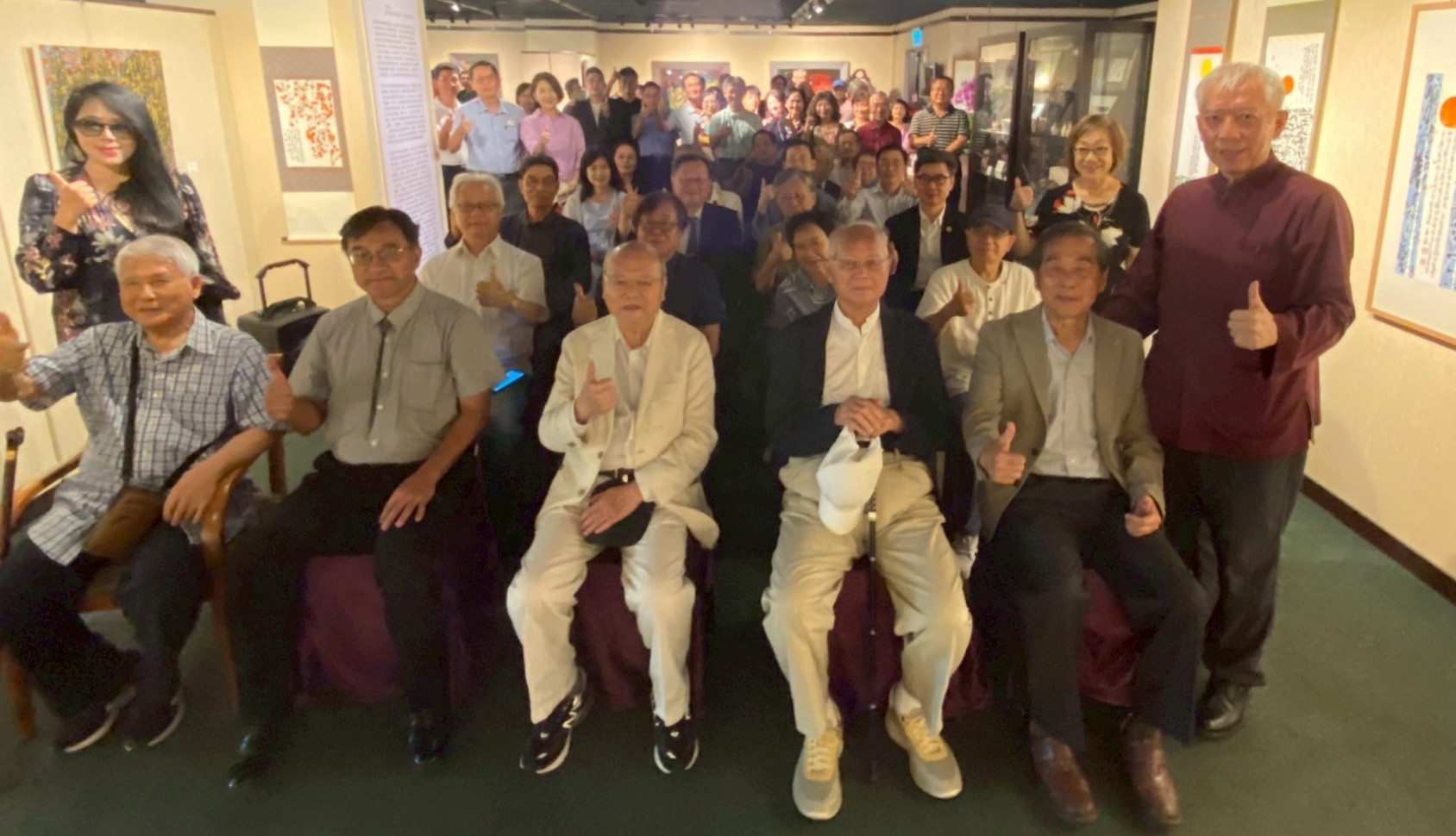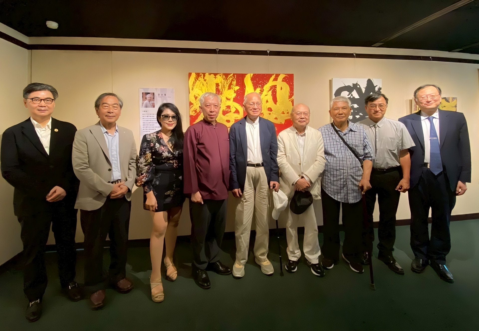 圖說:雙個展藝術家與會貴賓合影,馨昌股份有限公司董事長鄧傳馨(左1)、黃冬富教授(左2)、藝術家陳香伶(左3)、梁永斐(左4)、台灣美術院董事長廖修平、台大醫院院長余忠仁(右1)、國立清華大學副校長張祥光(右2)、江明賢教授(右3)、總統府國策顧問廖武治(右4)