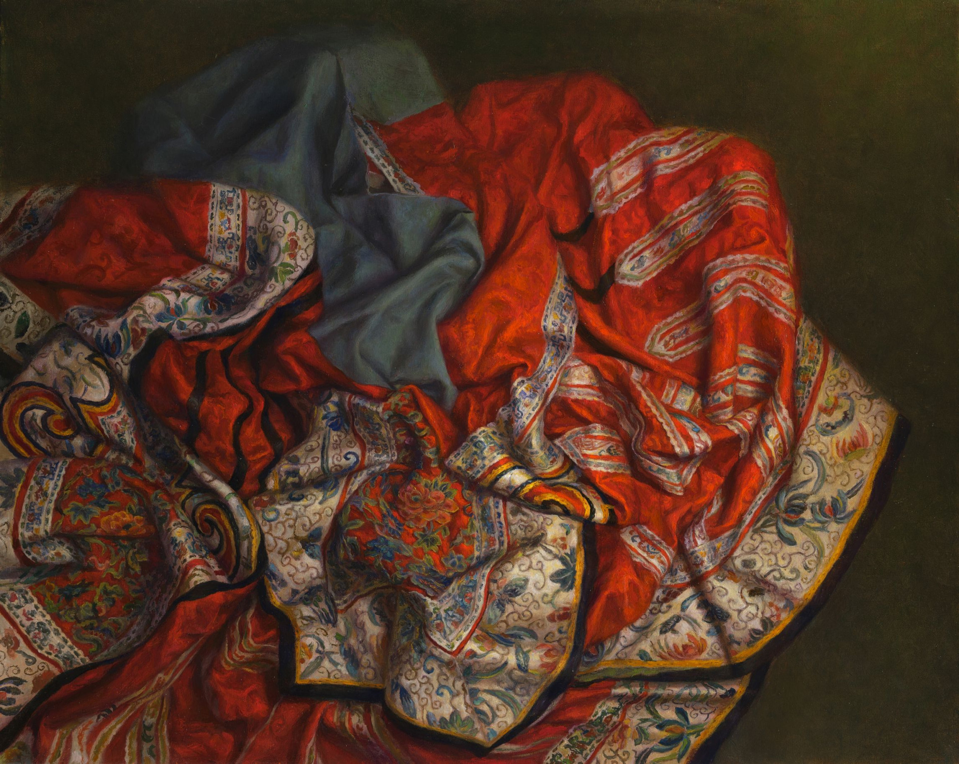 陳香伶提到,她的藝術創作之路其實並不順遂,因為必須在學校任教之餘爭取更多時間創作,多年來她以清朝刺繡衣飾為創作媒介,透過古典寫實油畫技巧的詮釋,體悟古代女性以針線繡縫的心境投射,藉由創作反思臺灣女性在傳統價值與現代處境間的矛盾,近期創作多聚焦於清朝衣物的揉捏,以多層次描繪罩染的創作方式,呈現父權體制加諸於女性的桎梏。陳香伶多年來必須兼顧家庭與創作,其實十分不容易,一路走來承蒙多位貴人相助。她特別感恩台灣美術院廖修平董事長與蘇憲法院長提拔她成為台灣美術院院士,也感謝梁永斐的提攜後進,與她一起舉辦畫展,完成她從小的心願在福華沙龍辦展。