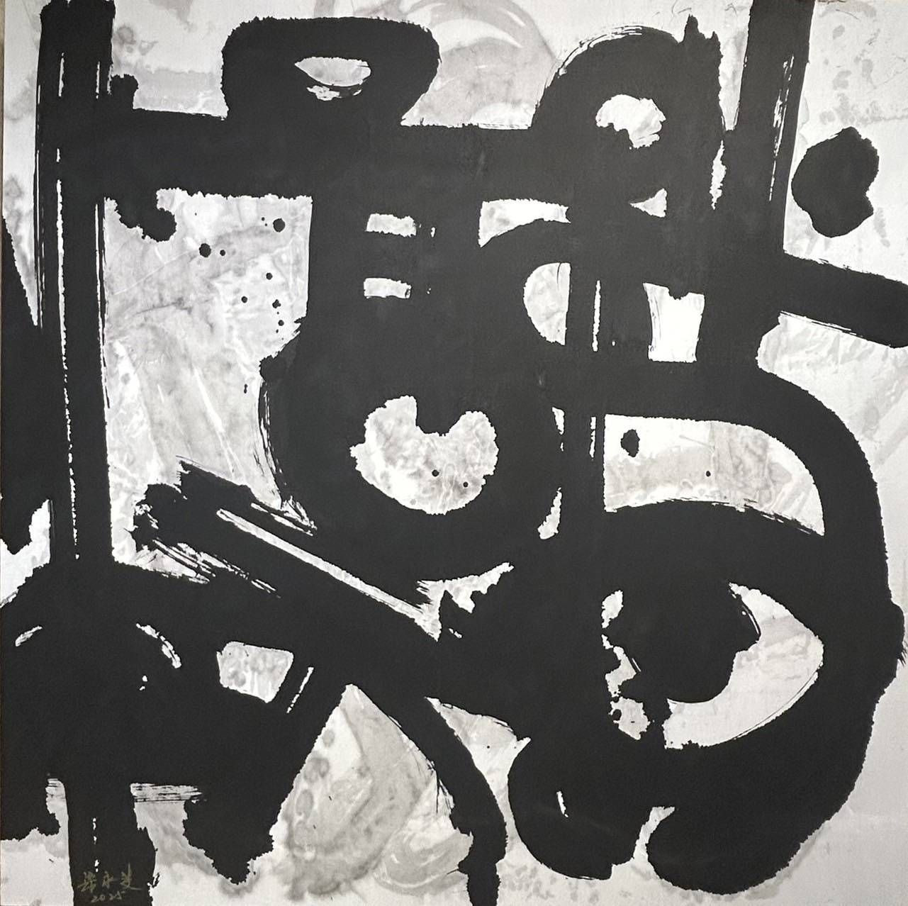 圖說:梁永斐 金文新趣NO.1 ,88x88cm宣紙·墨汁 2025
