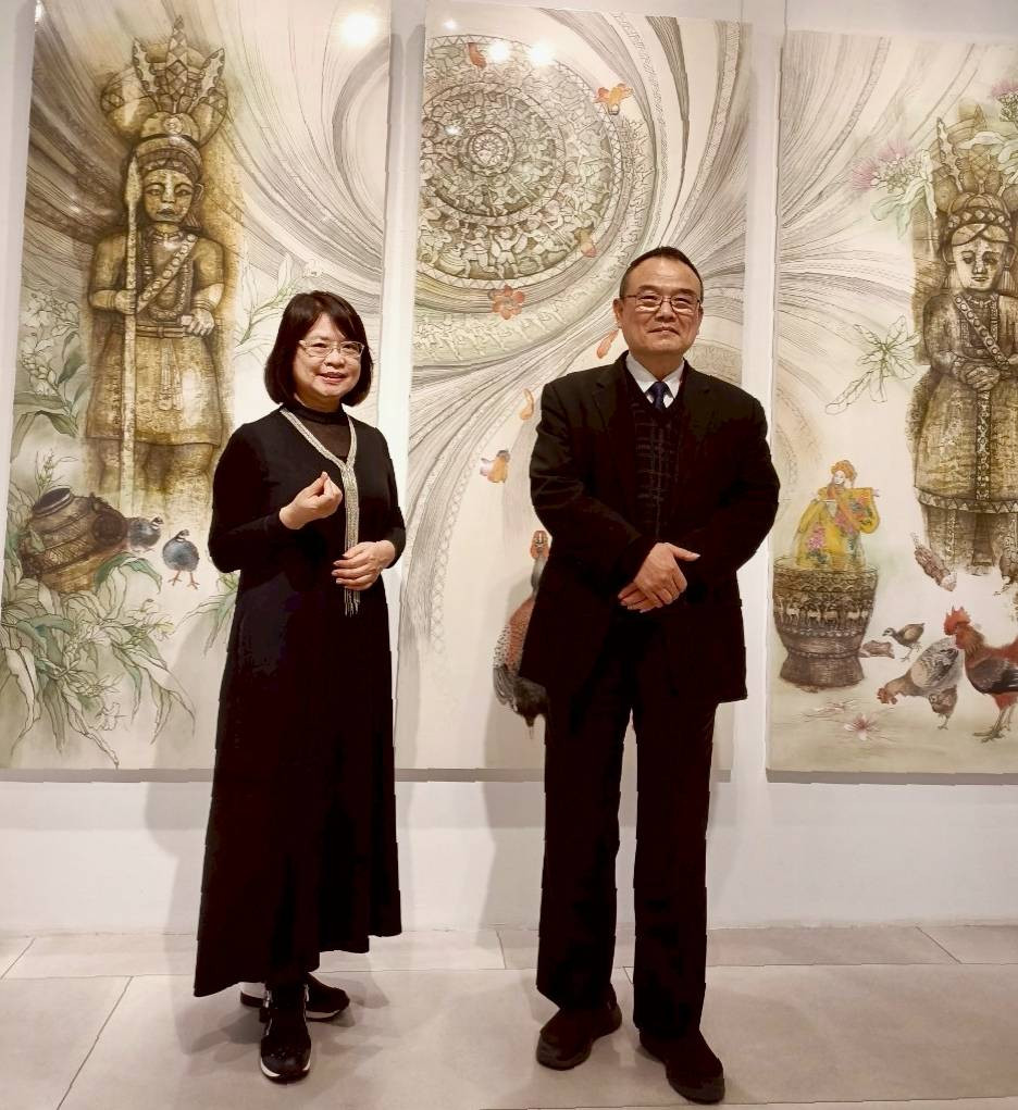 圖說:故宮蕭宗煌院長(右)對黃淑卿作品讚譽有加