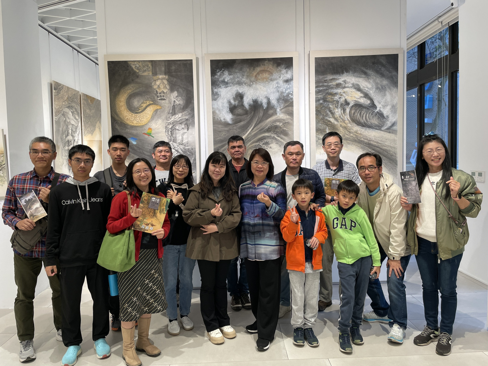 圖說:藝術家黃淑卿(前右三)與北科大參觀展覽的學生們合影